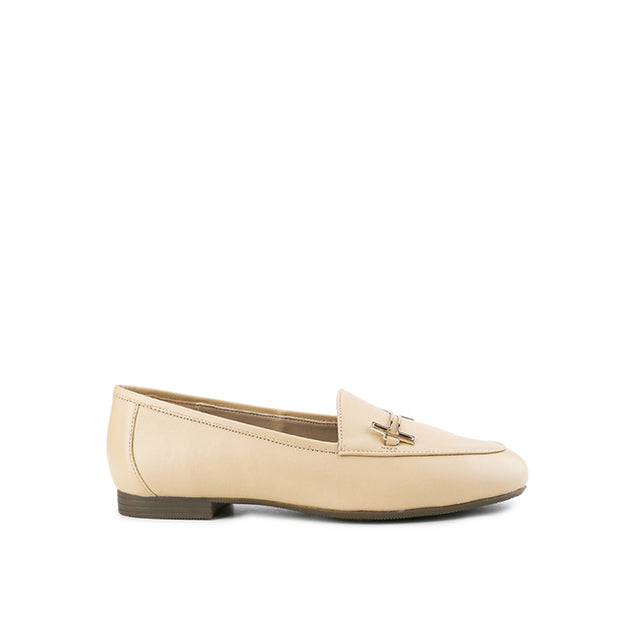 DescriptionFeatures and Benefits • Made in China • Innersoft is a simple, streamlined construction combined with supportive cushioning and soft lining. • Cement construction. • Soft lining material • Metal buckle accessorize Material & Detail Product Upper: Cow Leather Lining: Man Made Leather Insock: Man Made Leather Insole: Latex + Memory Foam Outsole: Rubber Color: Almond Gender: Ladies Sku: KB45187AL Style: Loafer