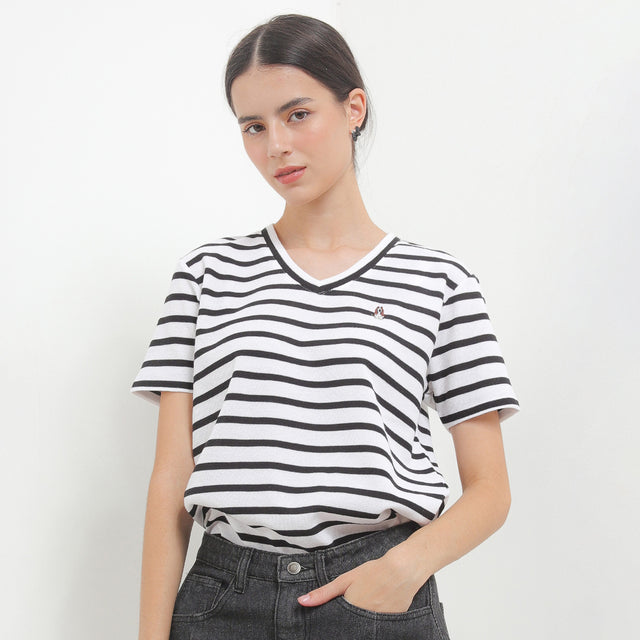 DescriptionDesign: Classic V-neck tee with a timeless stripe pattern, providing a stylish yet casual look.