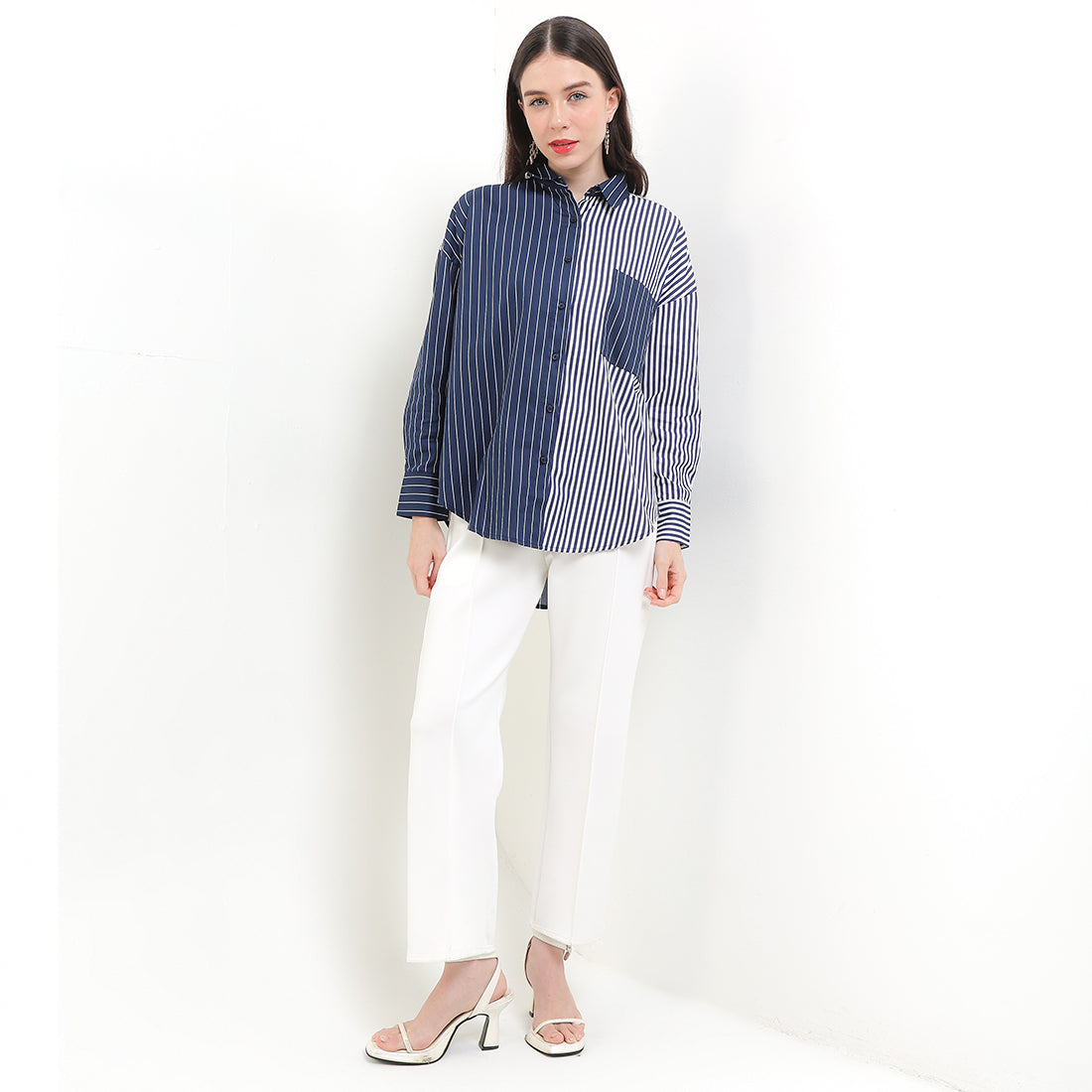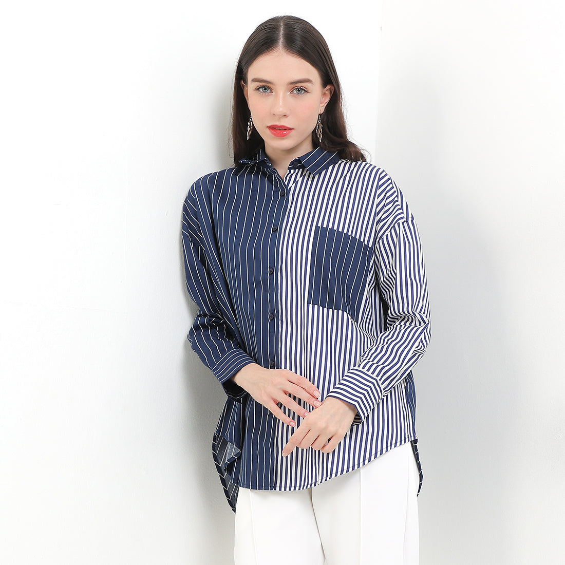 • Oversized combination striped long sleeve shirt