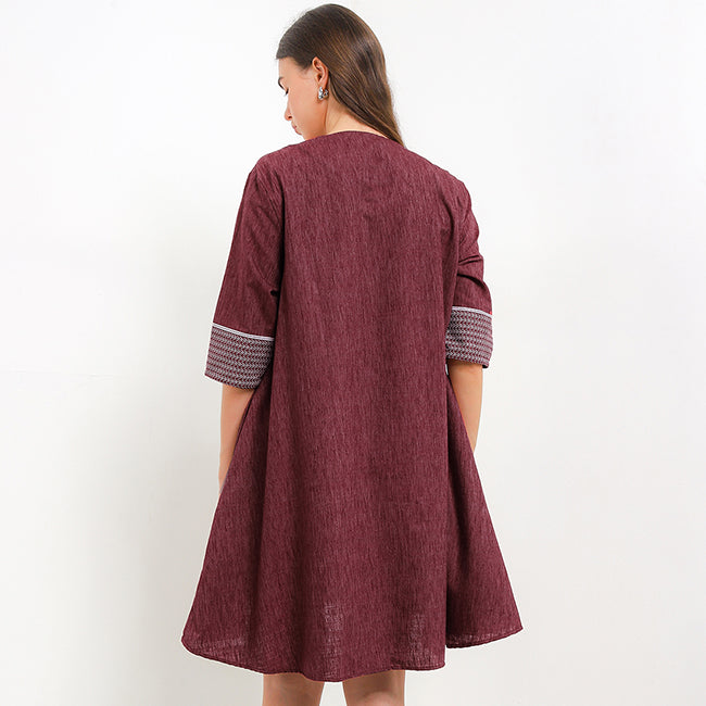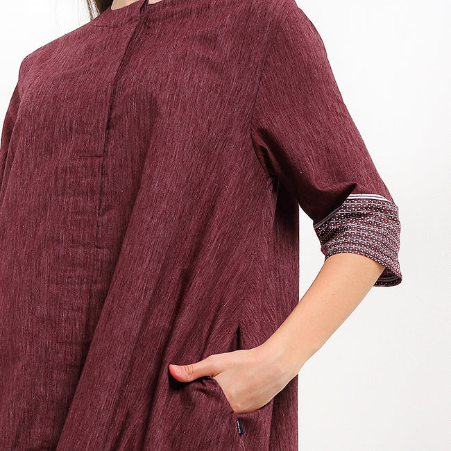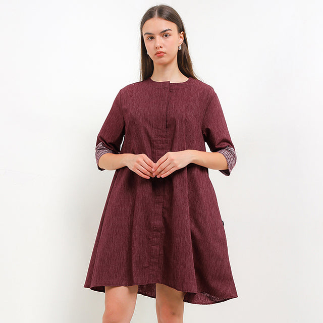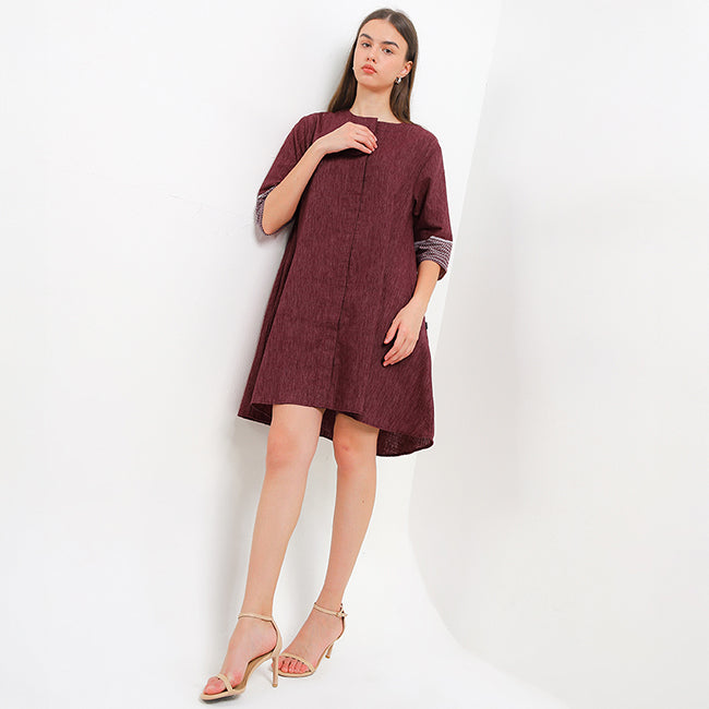 DescriptionDesign: A midi dress with contrast printed sleeves that elevate a minimal silhouette.