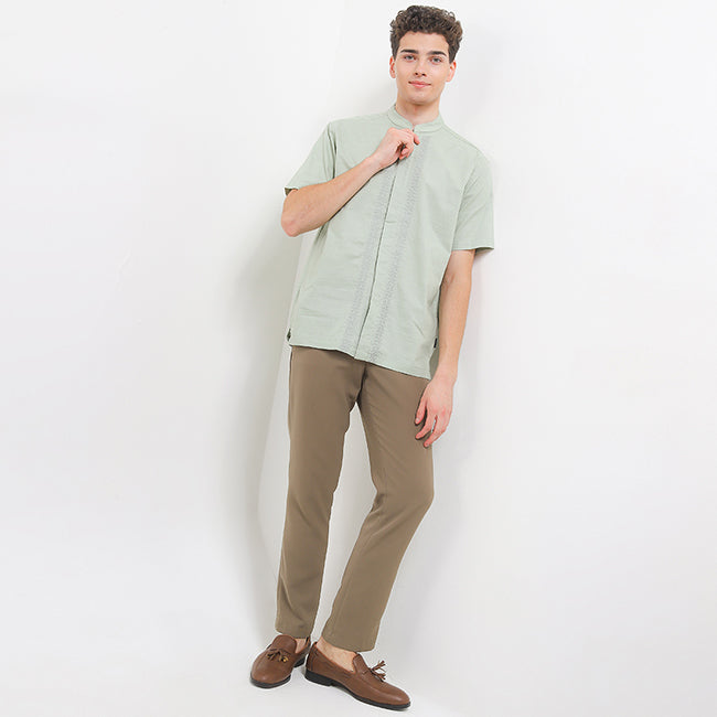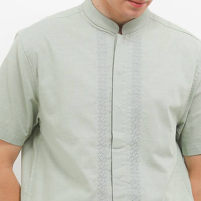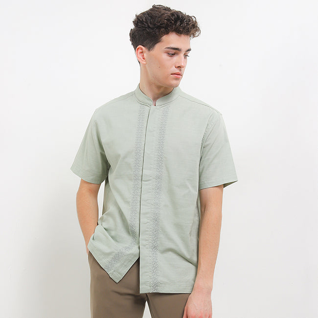DescriptionDesign: Elegant short-sleeve stand collar shirt with detailed embroidery.